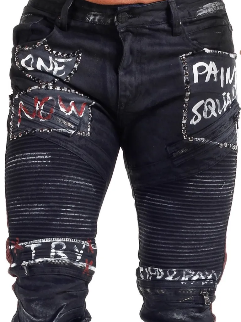 Malede Jeans Fra Cipo &Amp; Baxxrigtigt Lækre Jeans Med Mange Detaljer. Vil Du Være Unik, Og Ønsker Du At Skille Dig Ud, Er Disse Jeans De Rigtige For Dig. Malet Tekst Både Fortil Og Bagpå, Flade Nitter Som Udsmykker Bukserne, Samt Lynlåse Som Gør Bukserne Lidt Mere Cool.