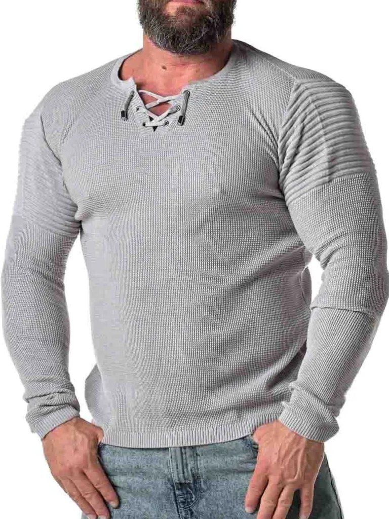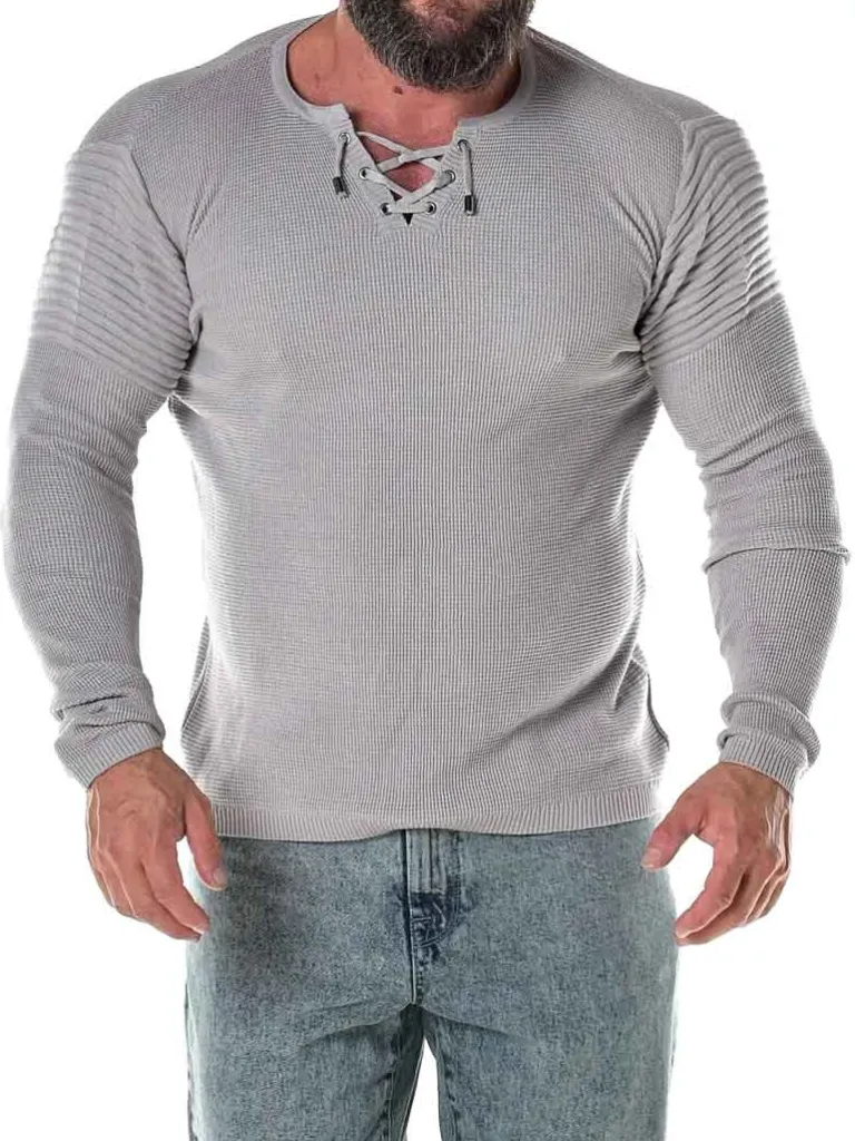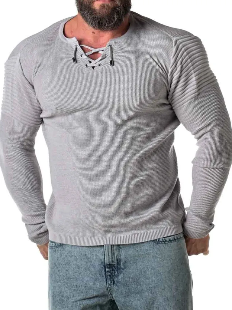 Trøje Med Snøring Fra Carismafinstrikket Trøje I Et Meget Elastisk Materiale. Denne Trøje Er Designet Med Striber På Ærmerne Og Snøring Fortil Ved Halsens Åbning.