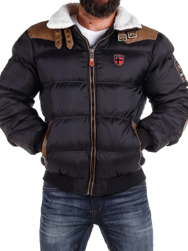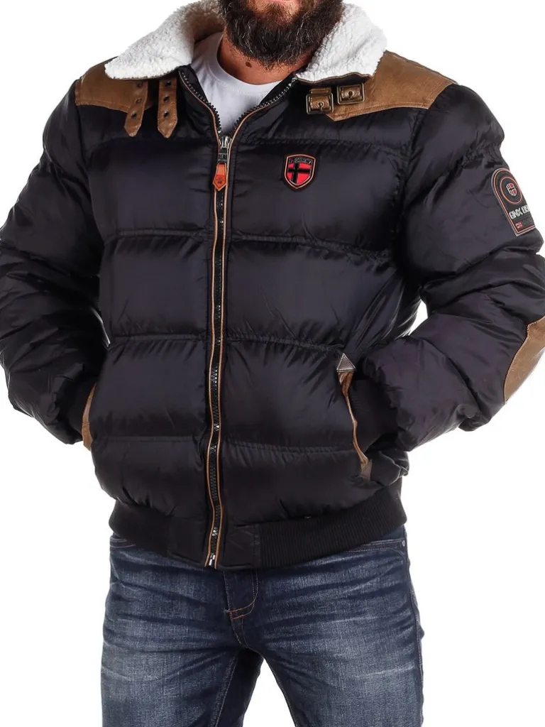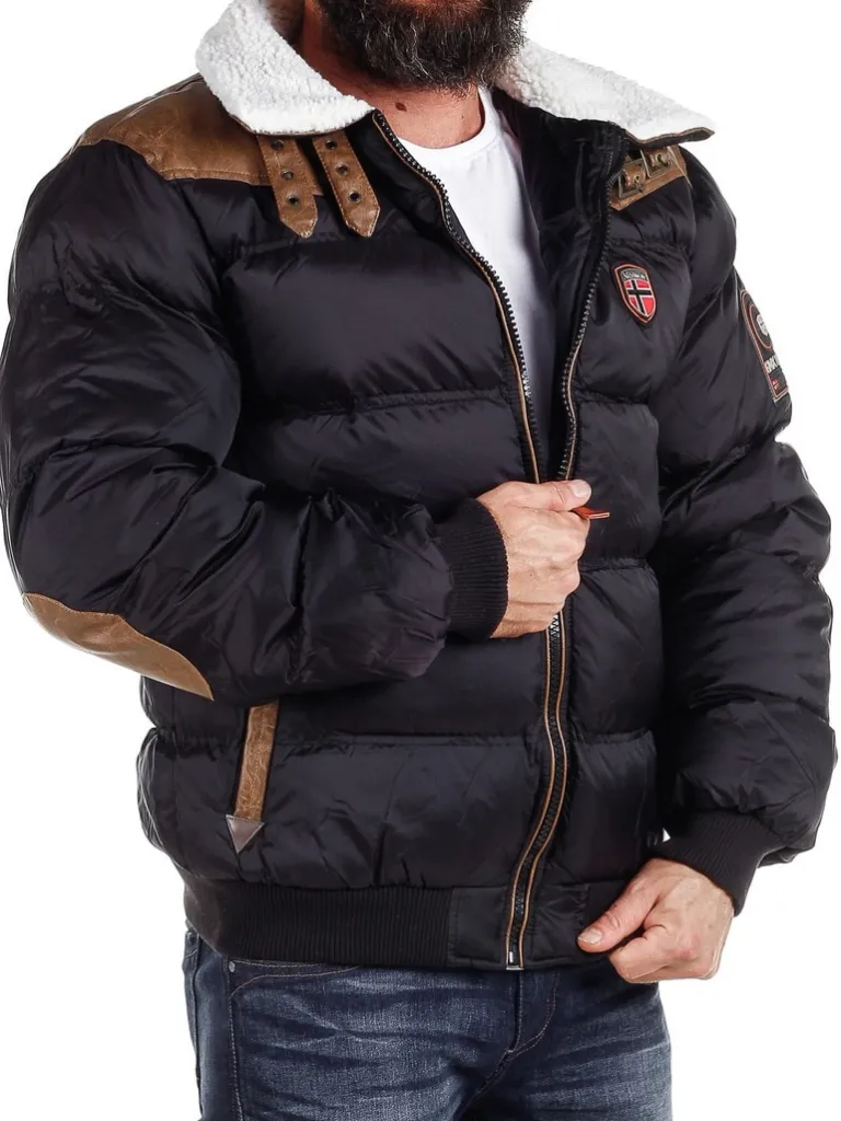 Cool Vinterjakke Fra Geographical Norway. Findes Kun På !Jakken Har En Maskulin Pasform I Stilsikre Farver Med Detaljer, Der Kommer I En Imitation Af Skind På Skuldre Og Albuer. To Lommer Ved Taljen Og To På Indersiden. Med Denne Jakke Kan Du Garanteret Beholde Både Stil Og Varmen Til Vinter!