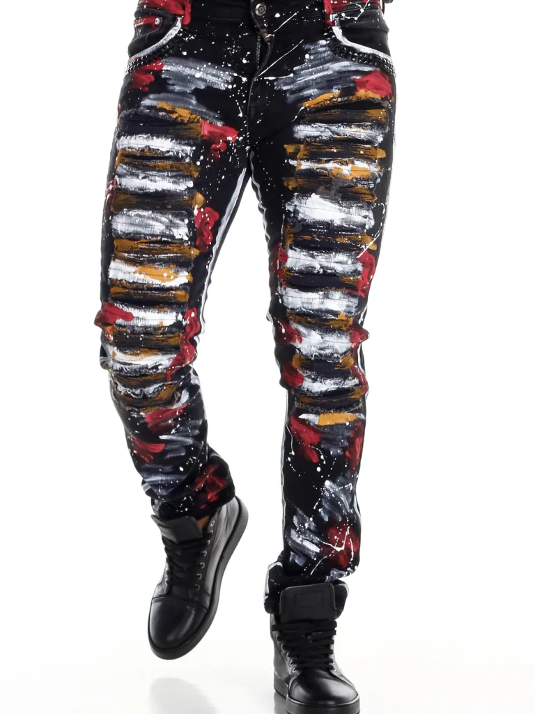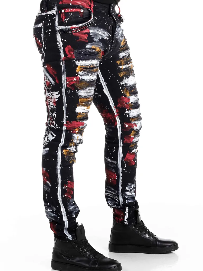 Råa Jeans Från Cipo &Amp; Baxx≪Br≫Unika Byxor Med Svart Bas Och Målade Effekter I Vitt, Rött Och Gult. Designa…