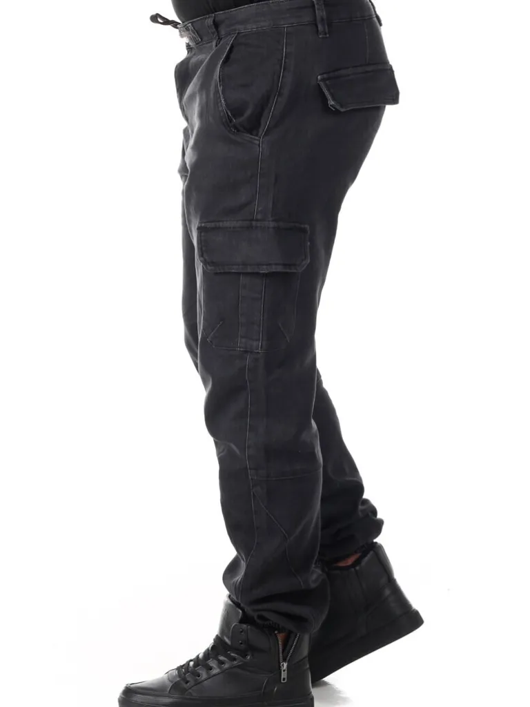 Joggingbukser Fra Urban Classicelastiske Cargobukser I Et Blødt Denim Materiale. De Har To Lommer Bagtil, Der Begge Kan Lukkes. Hertil Kommer To Åbne Lommer Foran, Og To Lommer På Siden Af Lårene, Der Begge Kan Lukkes. Der Findes En Ribbet Kant For Enden Af Benene Samt En Snøring. Der Kommer Dertil En Knap I Taljen.