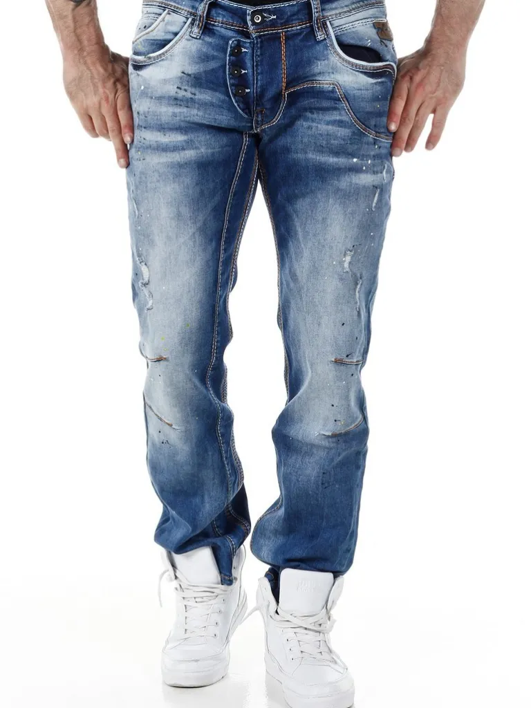 Jeans Med Stretch Fra Rusty Nealblå Jeans Med Synlige Knapper Ved Gylpen Og Cool Slitager I Materialet Og Nuancen. Anderledes Design Ved Lommerne Og Grove Sømme Er Detaljer, Som Skiller Sig Ud. De Har En Normal Pasform Og En Lap Med Logoet I Linningen Bagtil.