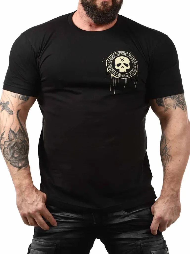 Cool T-Shirt Fra Hyrawsort T-Shirt Der Er Designet Med Et Stort Tryk Bagtil, Samt Et Mindre Tryk Fortil. Dette Er En Lige Model Med En Afrundet Samt Ribbet Åbning I Halsen. T-Shirten Er Fremstillet I 100 % Bomuld!