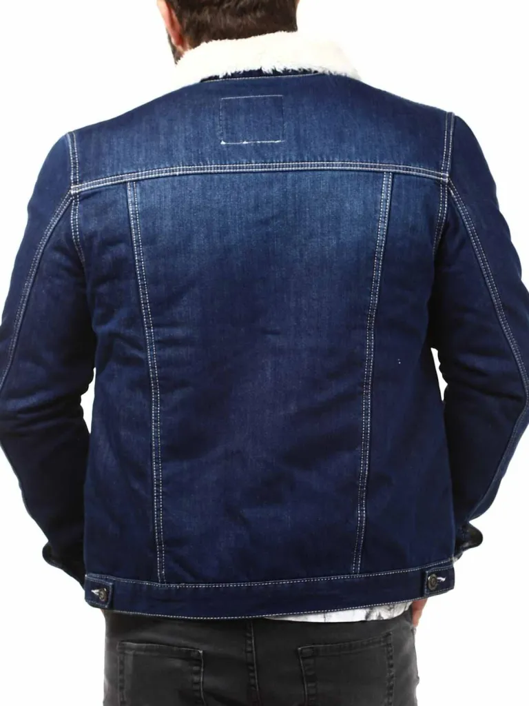 Foret Jeansjakke Fra Cipo &Amp; Baxxblå Jeansjakke Med Et Varmende Teddyfor På Indersiden Samt Iaven. Den Har To Lommer Fortil, Der Begge Er Åbne, Og Hertil Kommer To Lommer Fortil På Brystet, Der Kan Lukkes. Jakken Lukkes Ved Hjælp Af Knapper.